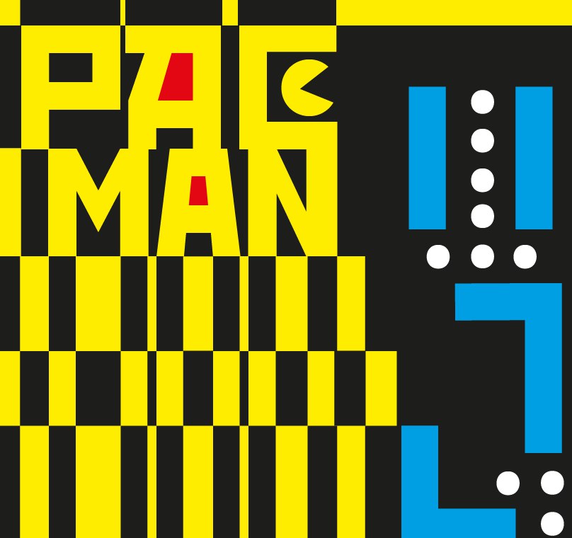 "пиксели" разного размера, отзеркаленный робот. Композиции нет, напоминает то, что рисуют школьники на уроках в тетрадке.