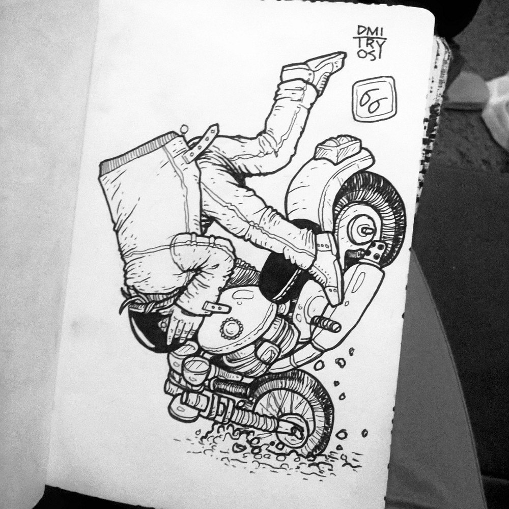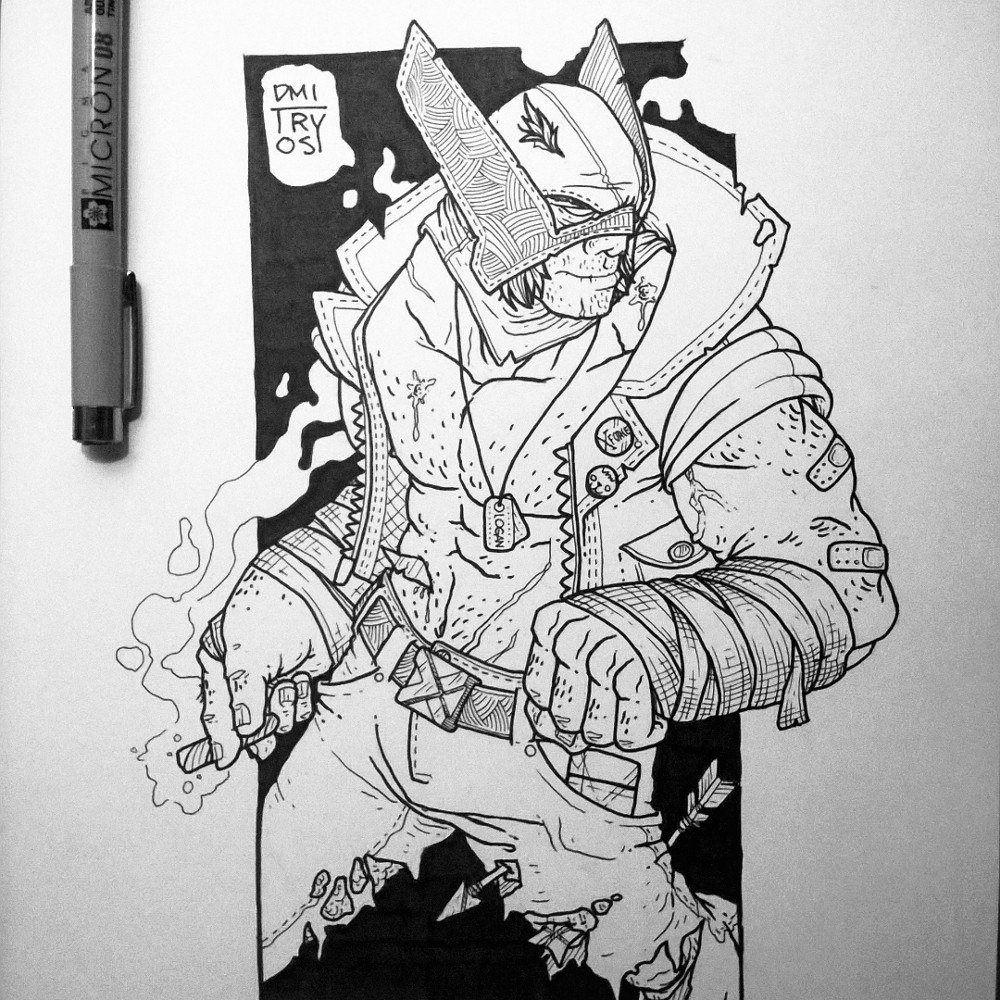 И тааак, поехали! Всем привет! Зовут меня Дима(DmitryOs), место обитания-г.Екатеринбург, люблю полениться, погонять чайку и котиков(погладить). С творчеством подружился еще будучи совсем малым, было желание рисовать, а что - это было не важно. Как и полагается, позже было обучения в художественной школе и прочие ништяки. Но по итогу вышел из меня "архитектор", вот не пойму, что меня тогда переклинило и я пошел не на мультипликатора. Но, что сделано, то сделано и я такой "сегодняшний" именно благодаря этому. Первые стикеры были напечатаны и закинуты в местный магазин гиковского стаффа за небольшие деньги, с подачи друзей и знакомых: "Хээй, ниггер, какого хрена ты не намутишь из рисунков наклейки ?" А там поехало местные фетивали и т.д, стиккеров становилось больше, а вскоре я решил поучаствовать в батлах от "Паразитуса" и понеслось... А вот с работой получается не все так гладко, но могу выделить пару мест, которые оказали влияние на мой прогресс и стиль рисунка в конечном итоге(как мне кажется): магазин комиксов GotComics и выставка ArtHeroes. Собственно с этих мест и началось погружение в мир супергероики и остальных причуд журналов с картинками, появился материал для референсов и детального изучения(благо можно было вплотную разглядеть каждый штришок). На данный момент я, как это принято называть модным словом "фрилансер".